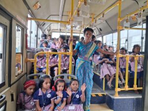 A field trip was organized for Aruna students to the New Bus Stand at Minjur on 10/12/2025. The visit helped the children understand different modes of transport and observe buses, traffic signals, and public places in real life.